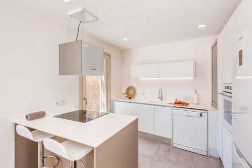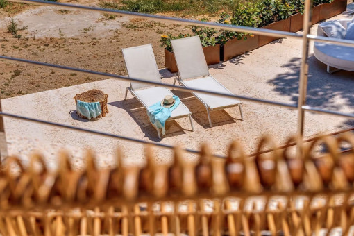 Outside, a large terrace awaits with lounge and dining areas, a covered BBQ station with outdoor kitchen, and a private 30 sqm pool with waterfall, perfect for enjoying the Mallorcan sun.