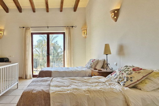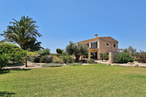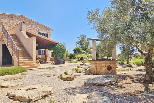 This attractive finca is situated on a spacious plot of 15,105 m² and harmoniously combines a traditional ambience with contemporary living comfort. Built in 2011, the house offers a living space of 283 m² and impresses with its high-quality construction and carefully selected materials. The well-tended Mediterranean garden with a variety of fruit trees - including orange and lemon trees - and the view of the inviting pool area create a particularly pleasant atmosphere.