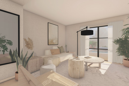 The planned residence extends over the basement, first floor and upper floor and offers approx. 210 sqm of living space. Spacious terraces, a covered porch, a stylish pergola of approx. 100 sqm in total and a 35 sqm swimming pool create an exclusive ambience for relaxed living under the Mallorcan sun.
