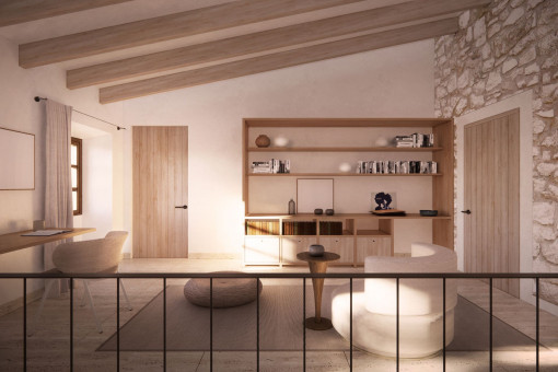 This renovation project in Lloret de Vista Alegre impresses with its quiet location, the lovingly landscaped garden and a private pool with approx. 25 m² of water. Particular emphasis has been placed on preserving the original elements. Natural stone walls, a historic well and exposed wooden beams have been carefully preserved and underline the authentic character of the house.