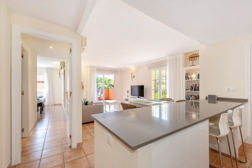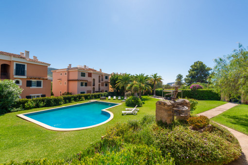A highlight is the spacious, 17 sqm covered terrace overlooking the well-kept garden area. It can be enjoyed all year round – for breakfast, relaxing in the afternoon, or simply enjoying the private outdoor space. The complex offers peace, a relaxed atmosphere, and an inviting community pool. Here you can enjoy privacy along with a pleasant neighborhood environment – ideal for the Mediterranean lifestyle.