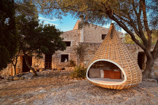 The finca offers four bedrooms as well as two additional outdoor sleeping areas, making it perfect for couples, families, or guests who wish to stay longer. The expansive grounds feature quiet gardens, hidden reading corners, ponds, shaded pathways, and an oriental tent for meditation, yoga, ceremonies, or simply as a peaceful refuge. Everything feels like a finely composed sanctuary that sparks creativity, supports healing, or allows for a deeply immersive Mallorca experience.