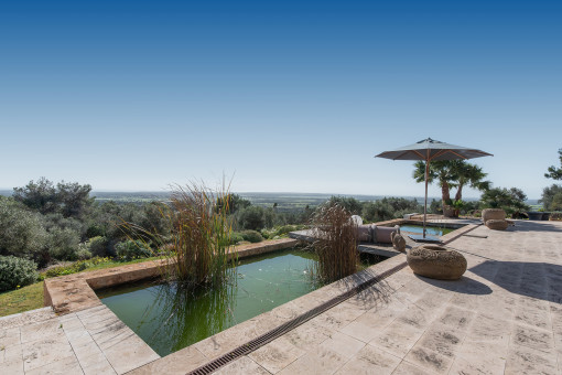 This exceptional estate is located at one of the highest points in the southeast of Mallorca, nestled within an idyllic natural landscape. From this privileged position, breathtaking panoramic views unfold over the villages of the east coast and across the Mediterranean Sea as far as the island of Cabrera.