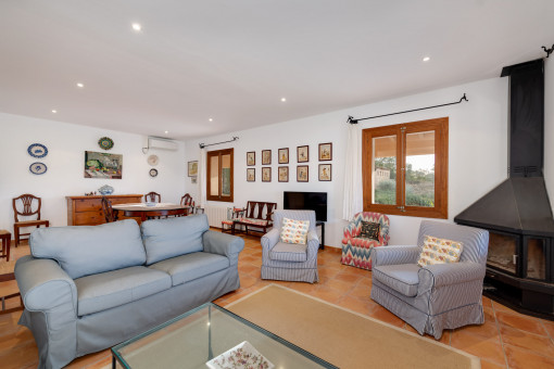 The finca offers approx. 215 m² of living space with a bright living area and fireplace, separate kitchen, utility room and a total of 4 double bedrooms and 2 bathrooms. A large terrace extends the living space to the outside and creates flowing transitions between indoor and outdoor areas.