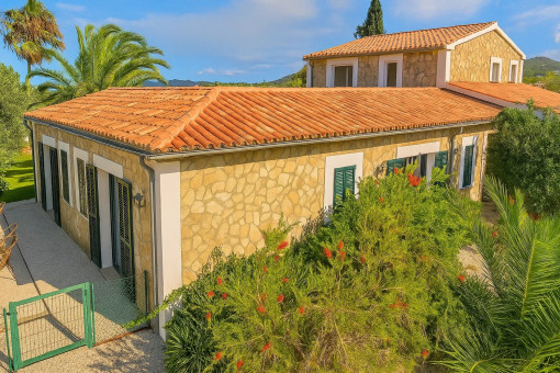 Between Alcúdia and Pollença, this light-flooded country house welcomes you with the tranquility of the north and views ranging from the Tramuntana mountains to the sea. On approximately 15,854 m² with olive trees and mature gardens, a place unfolds that celebrates Mediterranean outdoor living: sunny and covered terrasses, private pool, and plenty of space for long summer days.