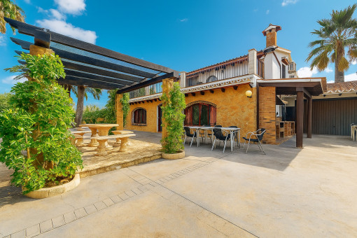 The finca is excellently equipped: gas boiler with large gas bottle deposit, three-phase power supply, its own well and mains water. An outdoor kitchen with oven is ideal for preparing pizzas, roast suckling pig or other delicacies. Despite its peaceful location, beaches, the old town, golf courses and sports activities are only minutes away – the perfect retreat with maximum leisure value.