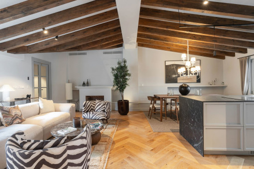 Nestled in the winding streets of Palma’s historic old town, just a few steps from the impressive cathedral La Seu, this exceptional apartment is located in one of the city’s most atmospheric areas. Restaurants, charming boutiques, galleries and museums are right on your doorstep, as well as historic squares, buildings and monuments that give the neighborhood its unmistakable character.