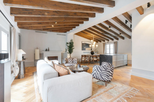 Nestled in the winding streets of Palma’s historic old town, just a few steps from the impressive cathedral La Seu, this exceptional apartment is located in one of the city’s most atmospheric areas. Restaurants, charming boutiques, galleries and museums are right on your doorstep, as well as historic squares, buildings and monuments that give the neighborhood its unmistakable character.