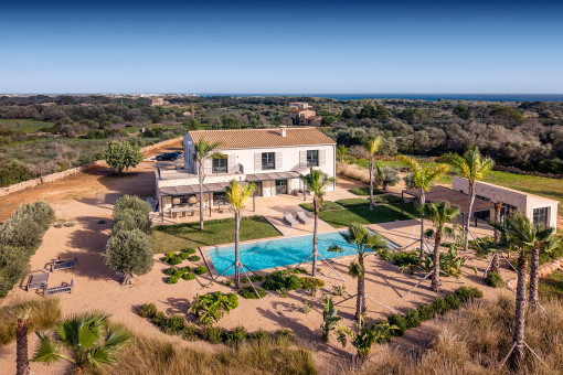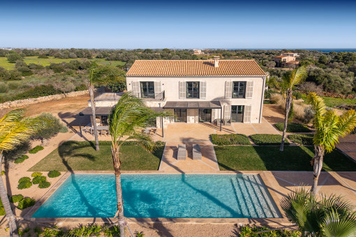 This exclusive new-build finca, due for completion in 2024, is located in the southeast of Mallorca, close to the popular coastal town of Portocolom and Cala Marçal. The location combines peaceful country living with a very good infrastructure: beaches, restaurants, cafés, shopping facilities and the marina of Portocolom can be reached in just a few minutes. Thanks to the good connections, the finca is easily accessible by car and at the same time offers plenty of privacy and nature.