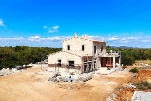 This impressive finca project with classic Mallorcan character and modern accents rises on a spacious plot with absolute privacy. The house offers a living area with 4 spacious bedrooms, each with its own bathroom en suite, as well as a separate guest WC. All rooms are flooded with light and are oriented towards the landscape - for a living experience in harmony with nature.