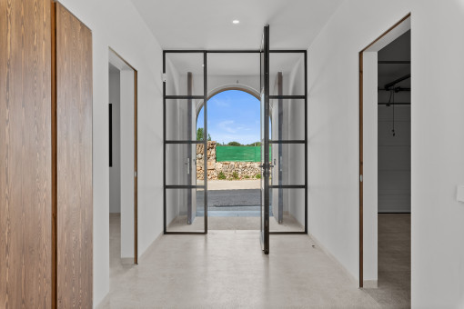 Inside, high-quality materials and refined craftsmanship define the living experience: Zarzi marble flooring, natural limestone finishes, and premium Technal windows with solar-control glazing create bright and elegant interiors. Details in Santanyí stone and aluminum shutters enhance the home’s authentic character.